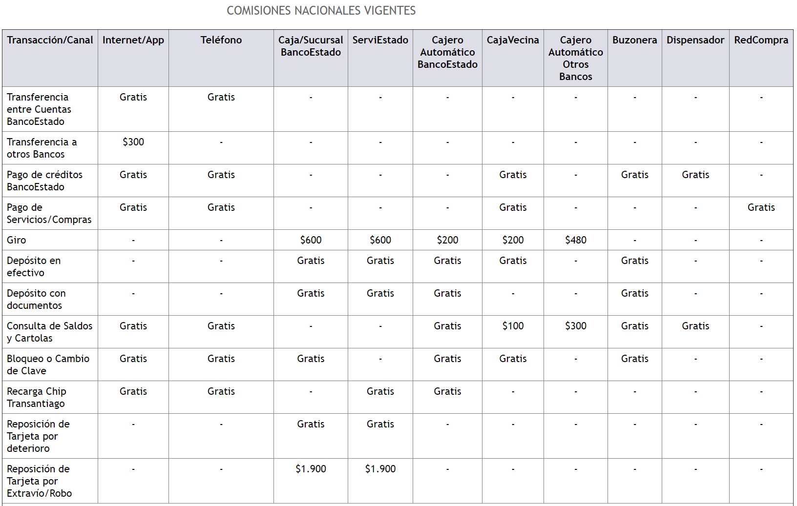 Aunque este servicio no tiene gastos de mantención y tampoco exige un mínimo de remuneración mensual del titular, sí tiene algunos cobros asociados por giros, transferencias, y consultas de saldo. Sin embargo, esta última operación también es gratuita en ciertos casos.
