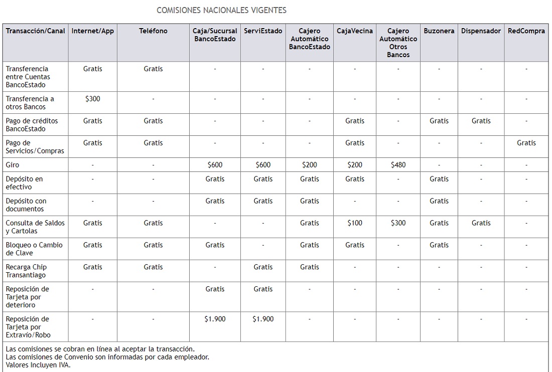Algunos de los costos de uso de la Cuenta RUT son los siguientes:
